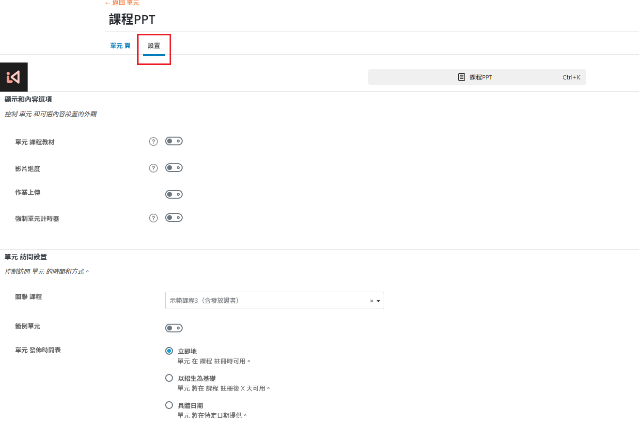單元/主題 發布時間表:不須設置,預設-立即 即可