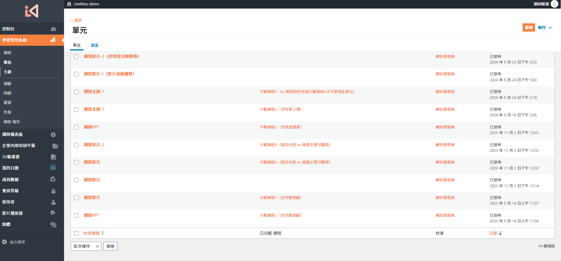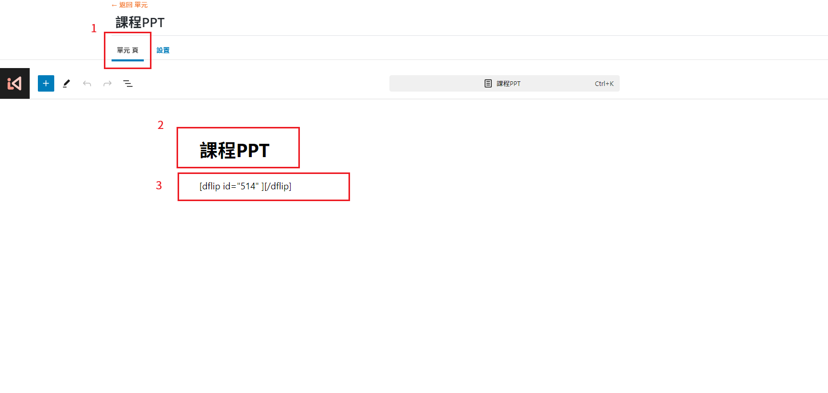 首先一進來就會看到 單元/主題 編輯區