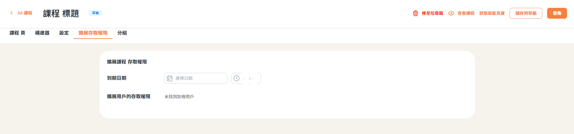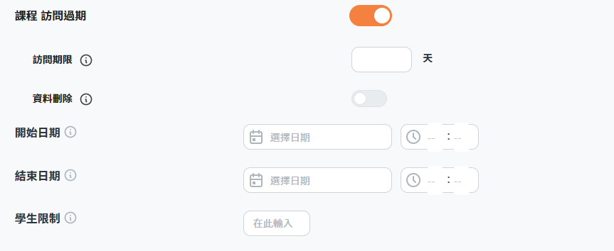 課程訪問過期 – 當設定只能訪問7天時,從學生開始上課後7天為課程有效期限(當有設置此功能,需要延期可以設定擴展存取權限)