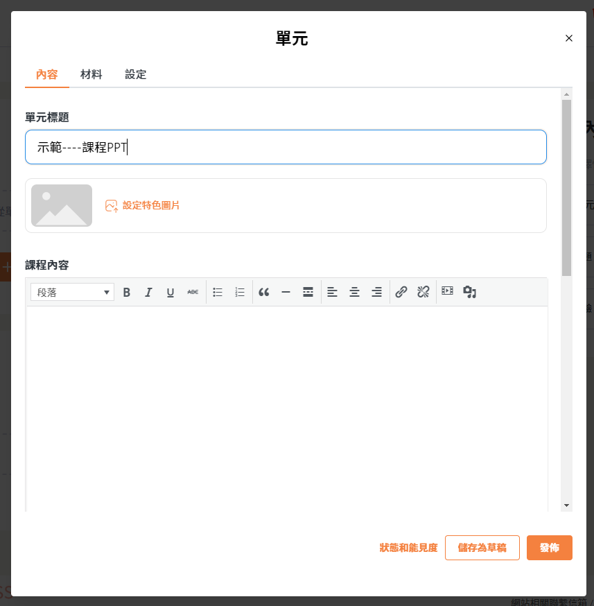 當您只需要新增單一內容時,只需要點擊「新增單元」→ 編輯完內容 → 發佈,即可完成