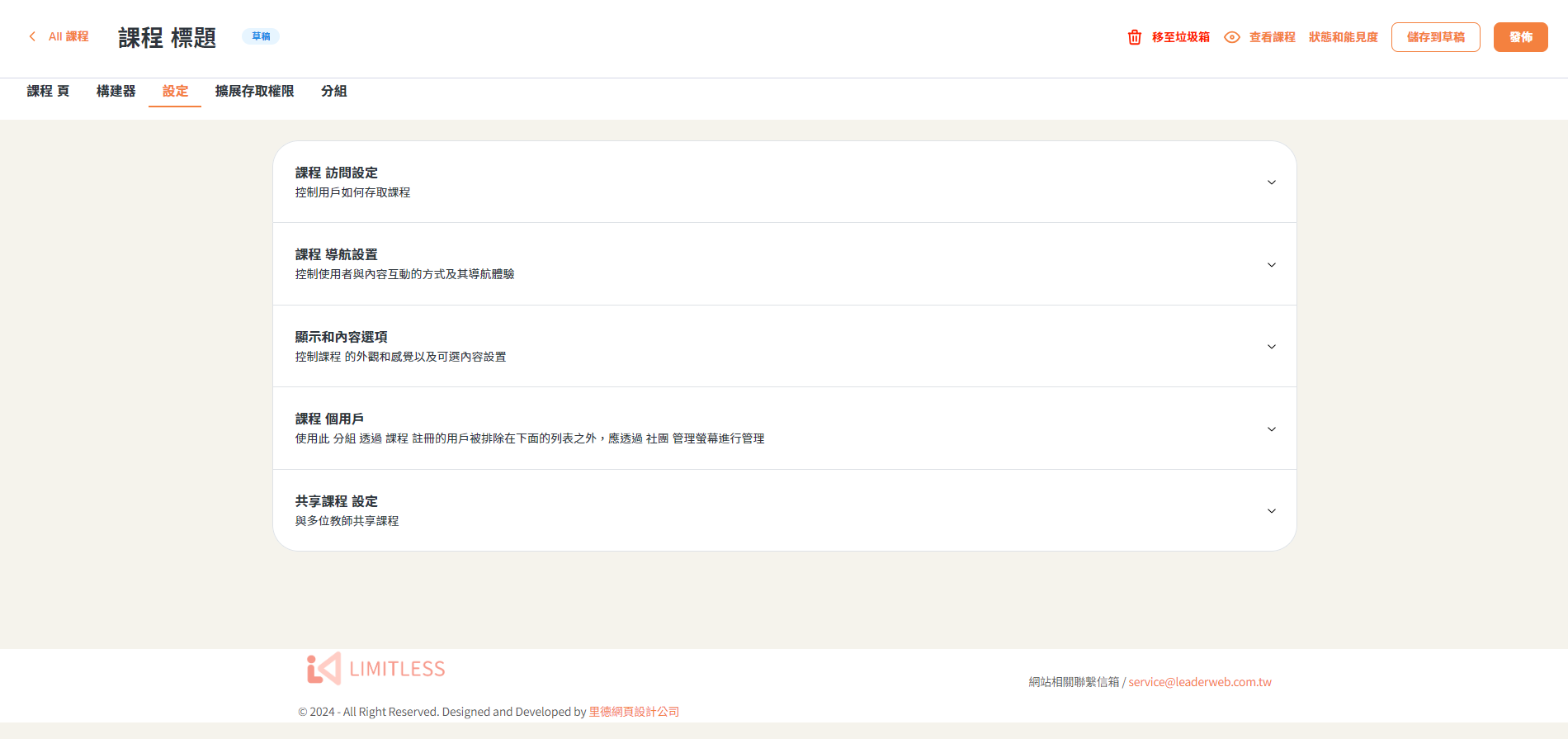 開放:不受保護,任何人都可以直接訪問內容(不建議 – 因為會導致報告數據吃不到,除非您不在乎學生上課進度,想讓學生自由上課)