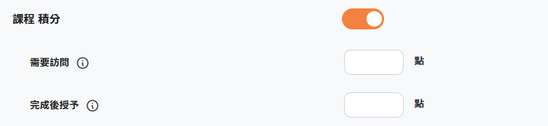 課程積分 – 設定訪問該課程需要多少積分,或者完成該課程時授予多少積分
