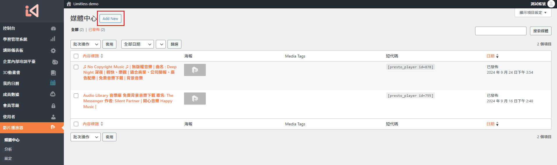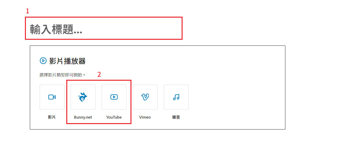 ※ 這邊會建議將影片放置在 Youtube 或者 Bunny.net 上存放,並以串接的方式串接過來(不會佔據平台空間導致平台速度變慢)